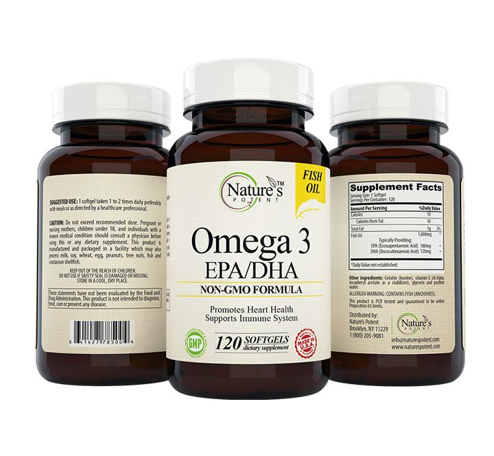 The main ingredient of Omega 3 EPA/DHA from Nature’s Potent is fish oil that provides your body with these essential fatty acids. Supplementary ingredients include bovine, glycerin, vitamin E, and purified water.