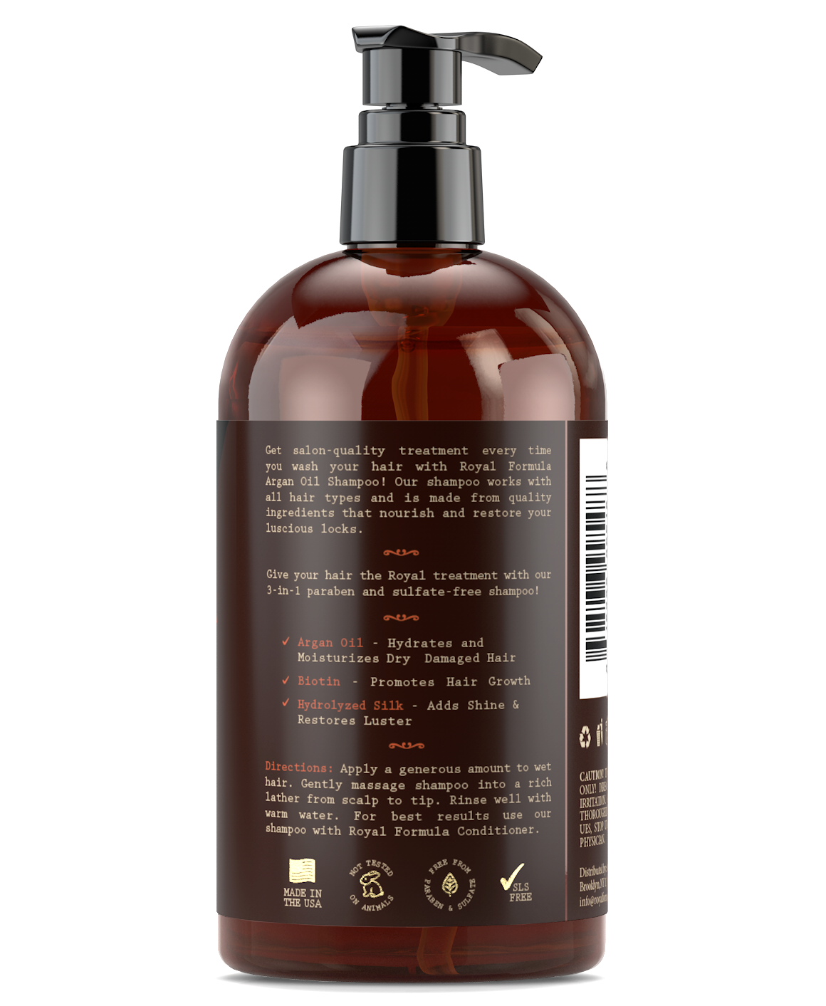 “Royal Formula” Argan Oil Shampoo comes with our complete satisfaction guarantee. You'll see results after your first treatment or your money back. You can try it risk-free because our “Royal Formula” Argan Oil Shampoo comes with a Lifetime Guarantee.